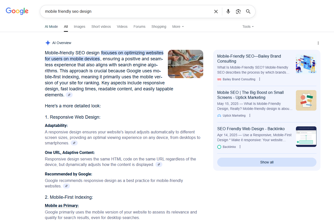 The truth is, AI is extremely lazy. It’s very resource-intensive, so it’s programmed to always look for the biggest shortcuts. This is where Schema comes into play. Schema makes it easier for AI to understand what the content is about and how it’s structured, so it’s a lot easier to generate an AI Overview.